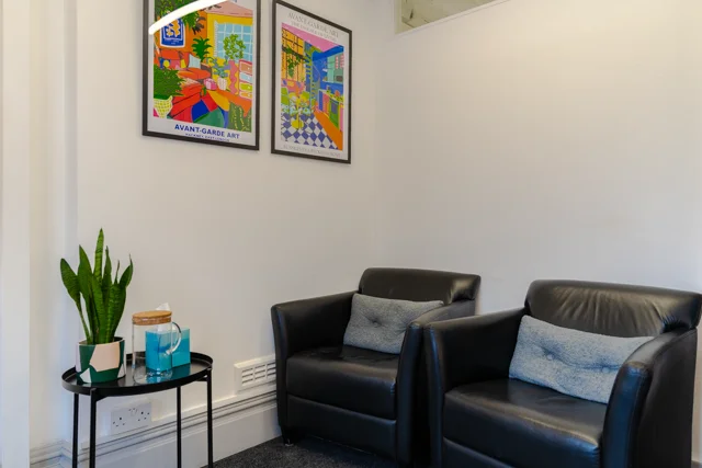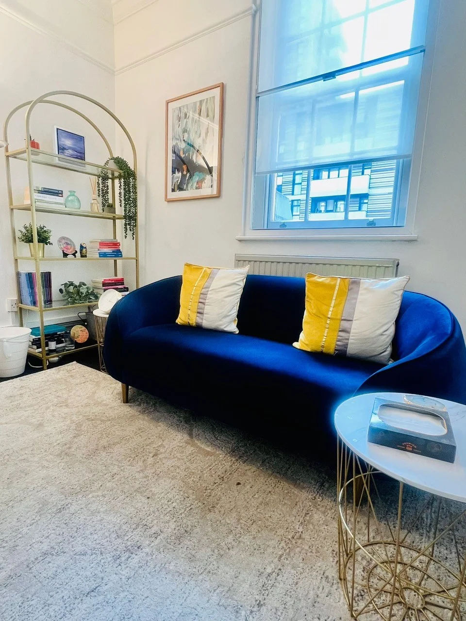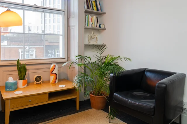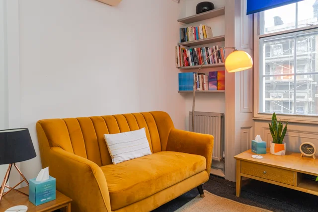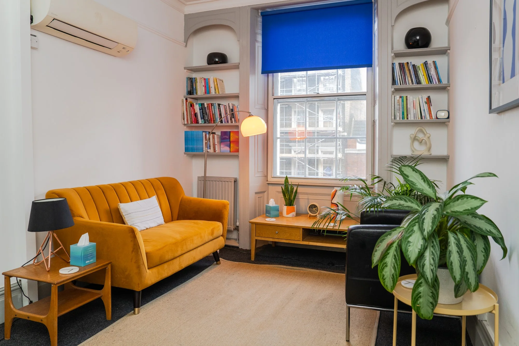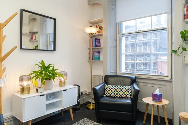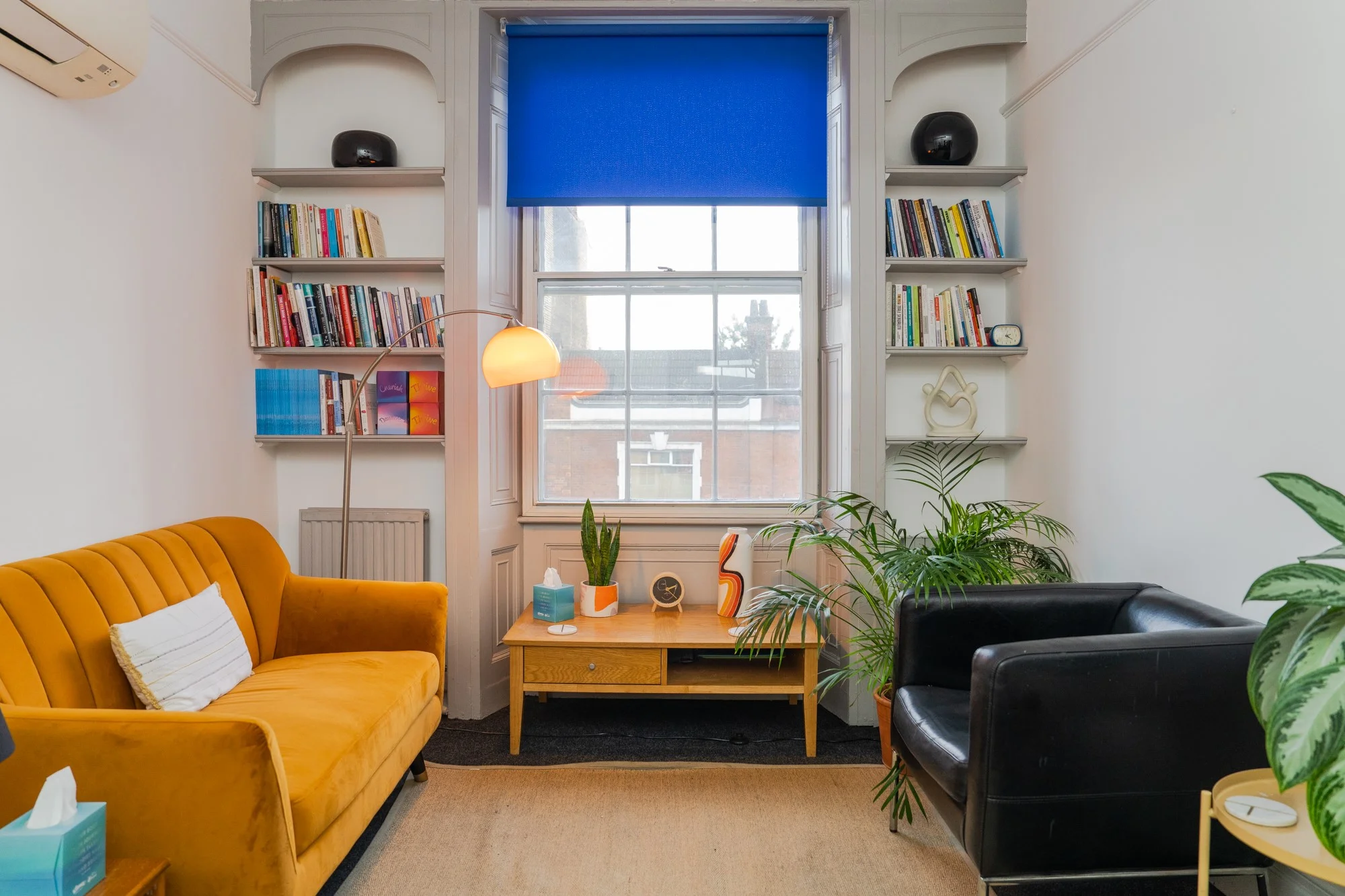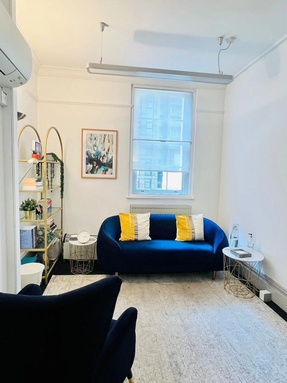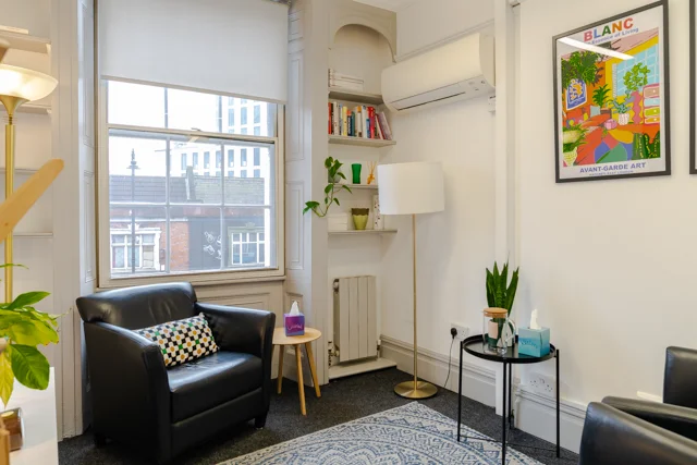 We are on the second floor of a lovely three storey townhouse and all rooms have remote operated air conditioning and are sound proofed with double glazed windows. Choose from four of our therapy rooms suitable for talking therapies with individuals, couples and families, see photos below: